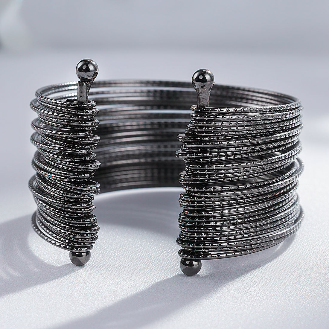 PRAO Anti-Tarnish Gunmetal Multilayer Bangle Bracelet (Adjustable Size)