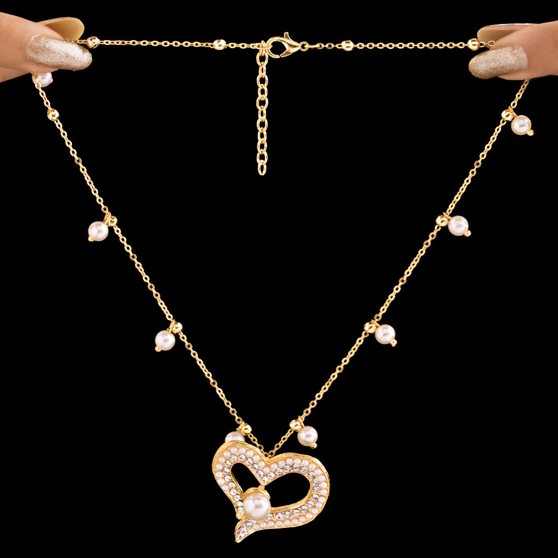 PRAO Anti-Tarnish AD-Studded Heart Charm Necklace with T-Lock