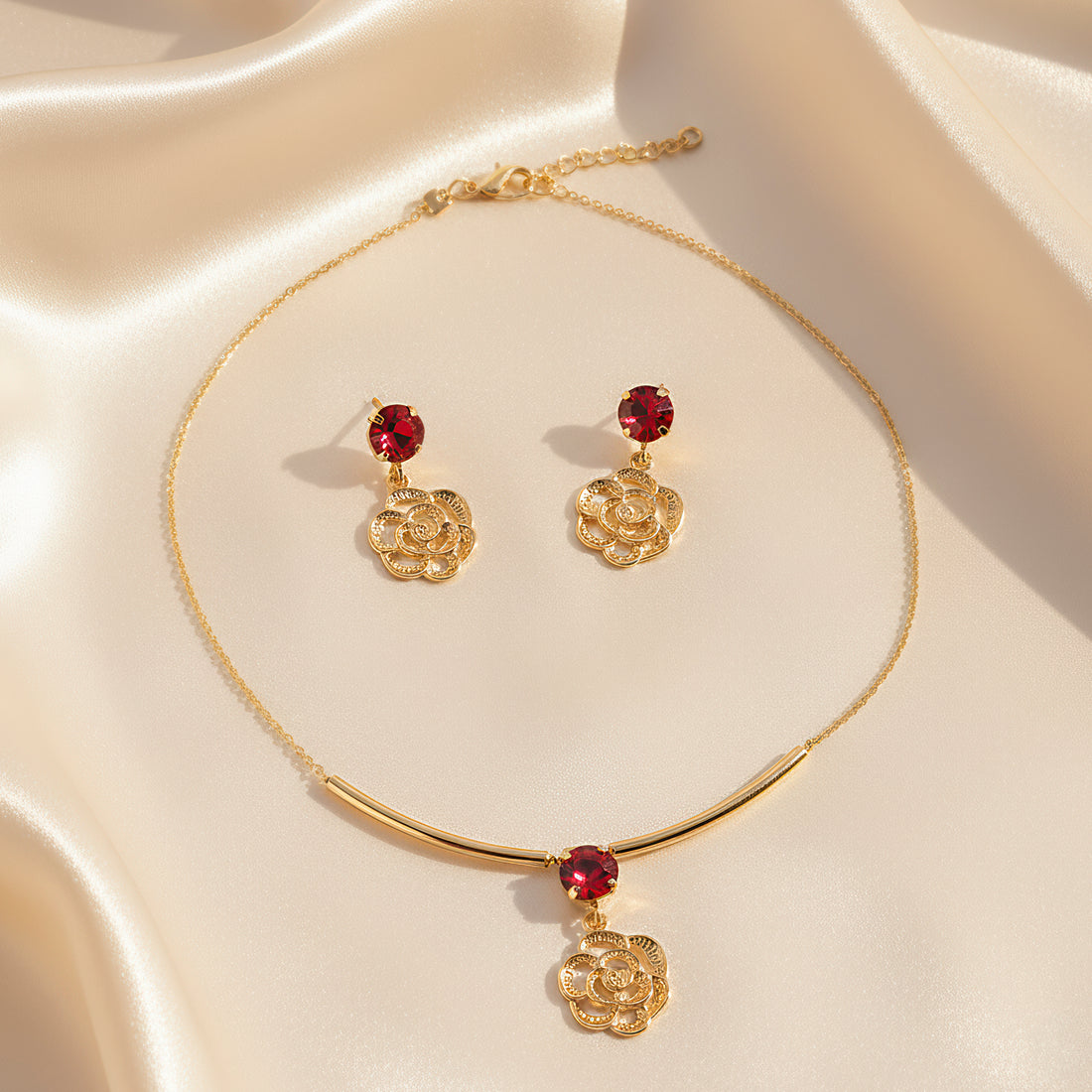PRAO Necklace Anti-Tarnish Flower Set With Earrings