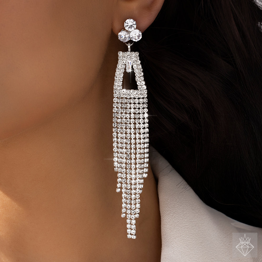 These gorgeous crystal flower earrings, which include stunning trapezium-shaped rhinestone chain dangles, will add flair...