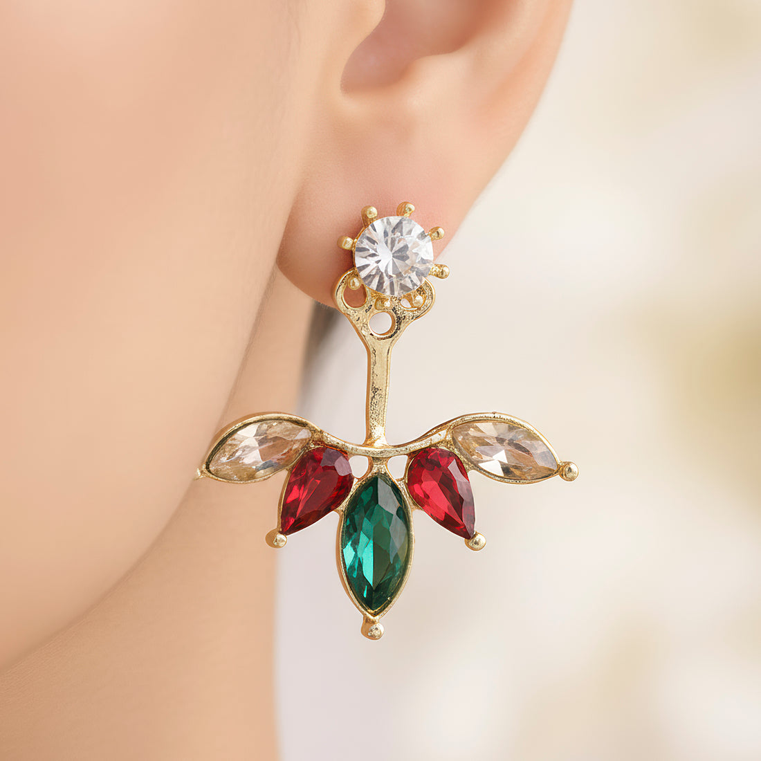 PRAO Earrings Anti-Tarnish Oval Multi-Color Crystals Danglers