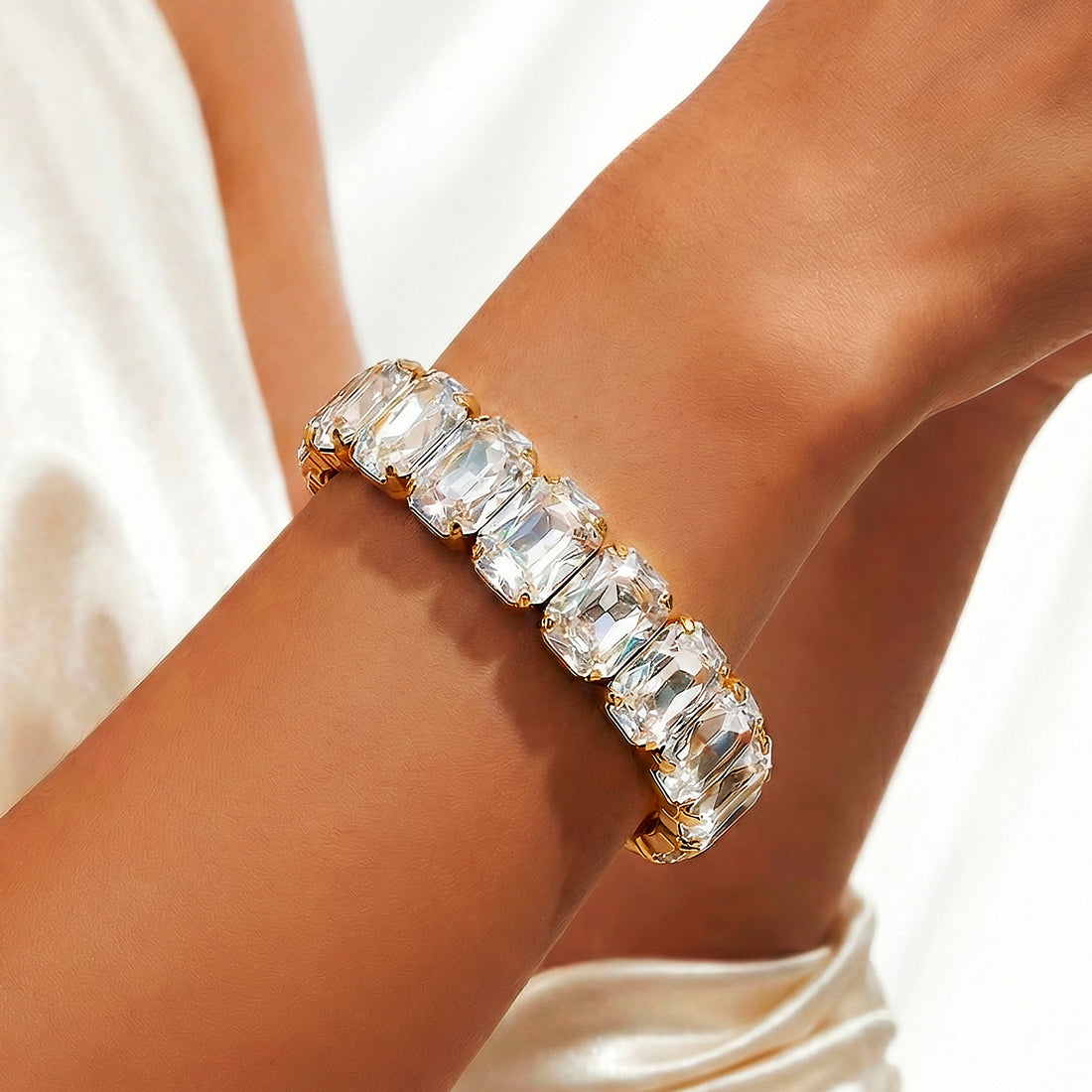 The glittering white crystals on this exquisite stretch bracelet exude classic elegance and sophistication. Every...