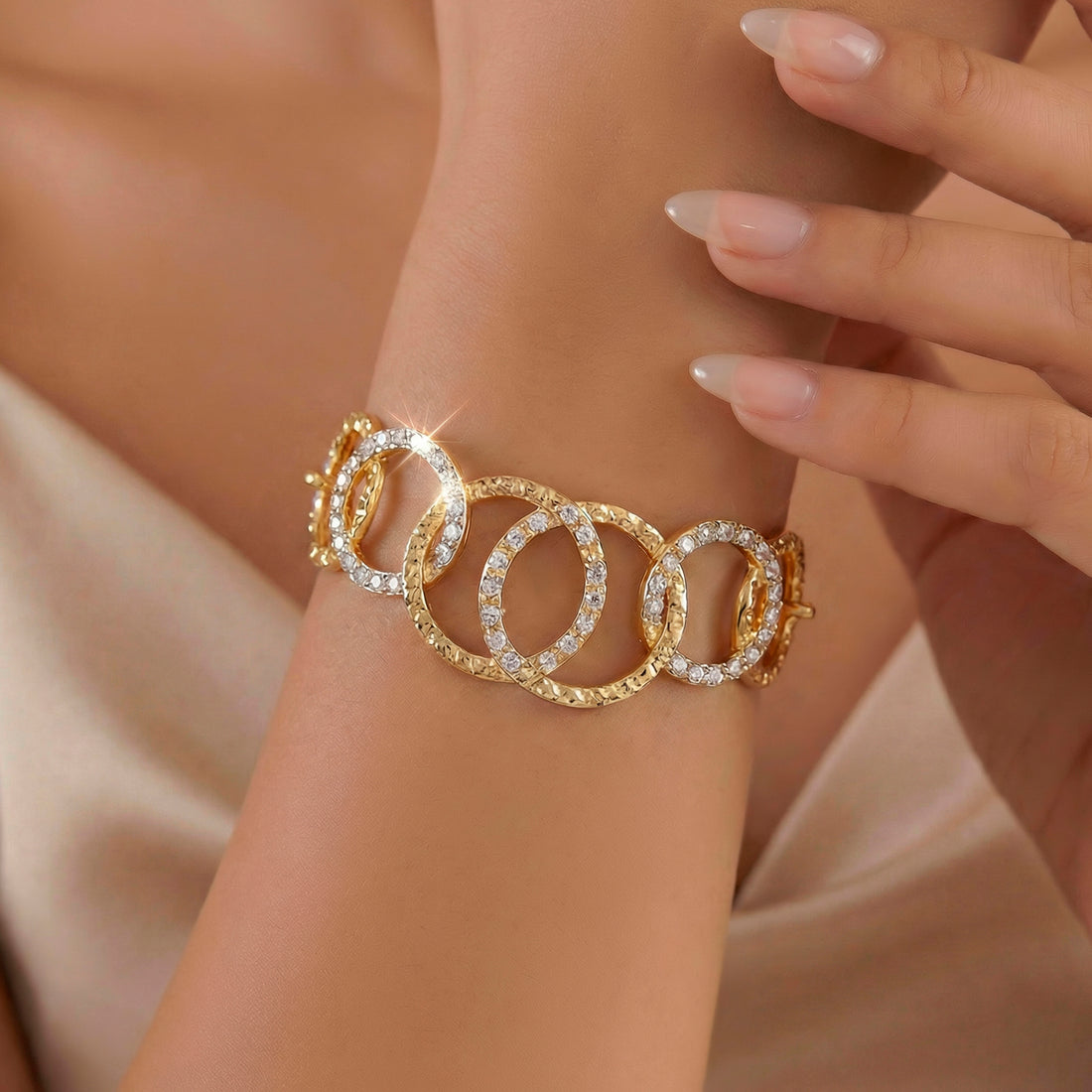 The exquisitely designed interconnected circles on this chic bracelet, which are set with glistening ADs,...