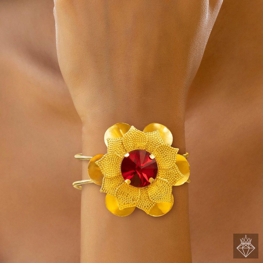 PRAO Anti-Tarnish Ruby Flower Bracelet (Adjustable Size)