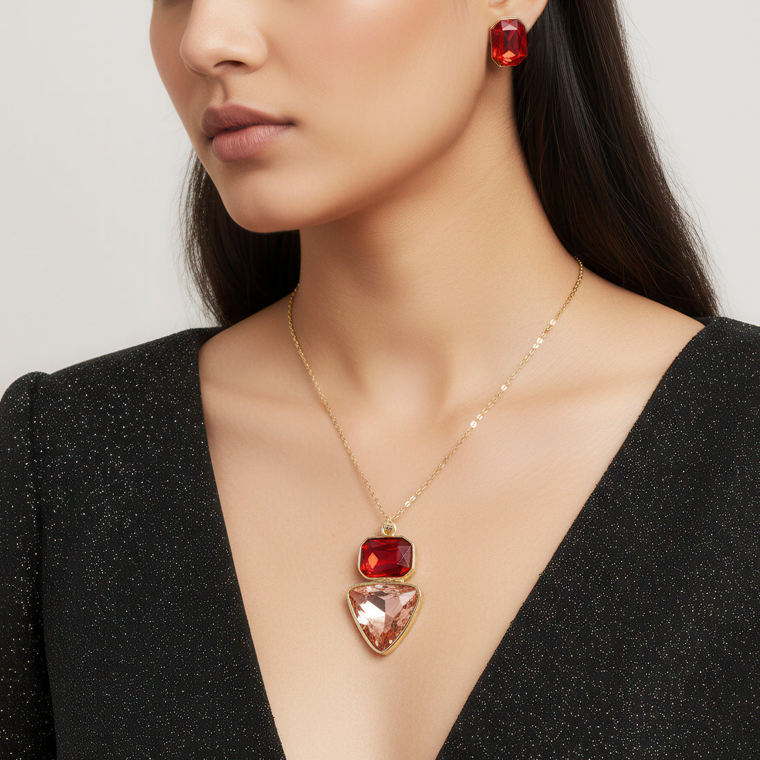 PRAO Anti-Tarnish Rectangle & Triangle Pendant Necklace with Earrings