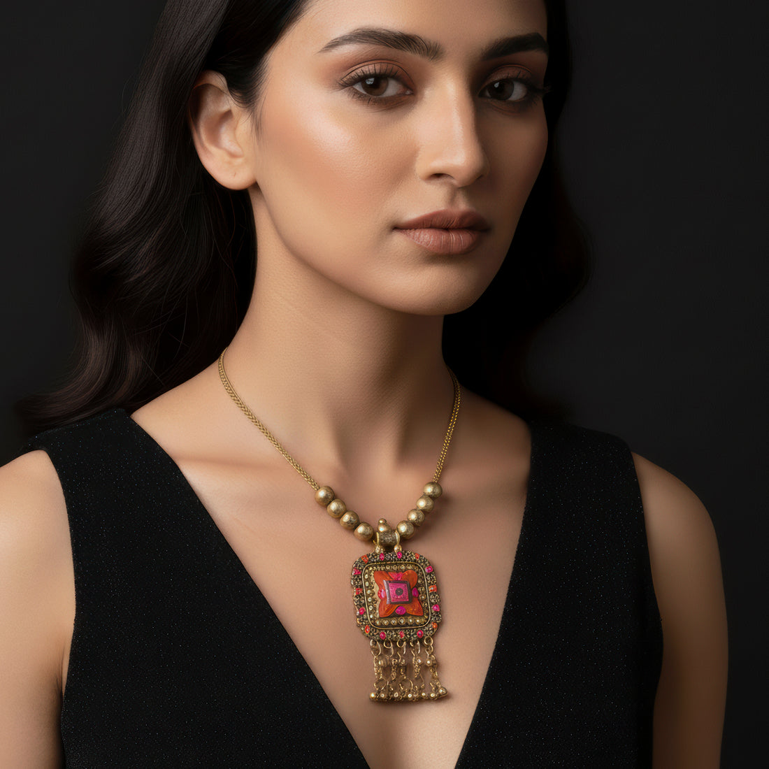 PRAO Ethnic Statement Necklace with Colorful Enamel