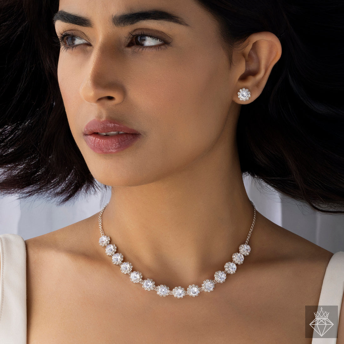 PRAO Anti-Tarnish American Diamond Necklace Set With Earrings