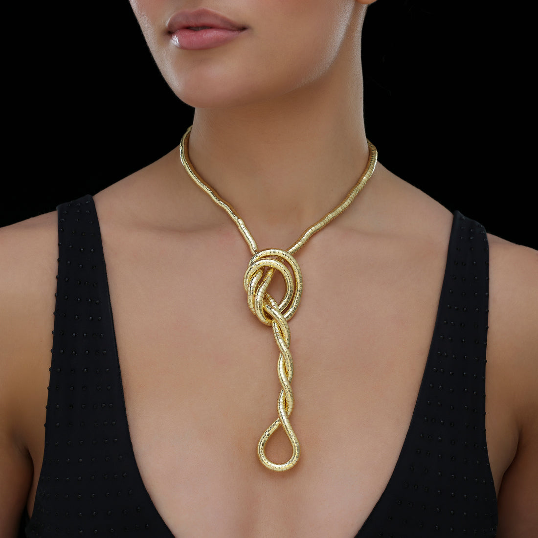 This exquisite flexible golden necklace is made to add effortless elegance and contemporary charm to...