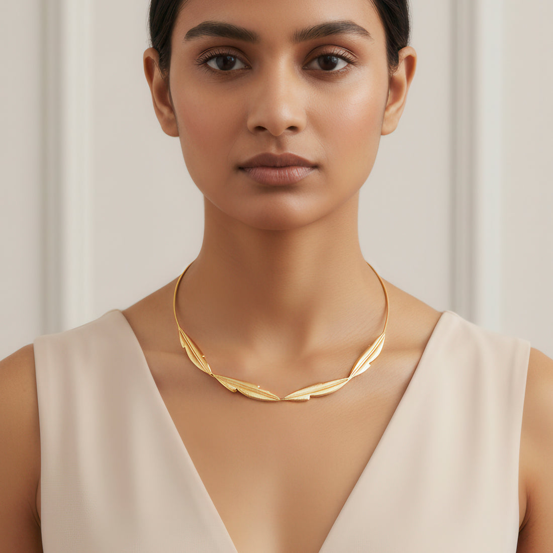 This minimalist hasli necklace, which is simple yet eye-catching, has a lovely leafy design that...