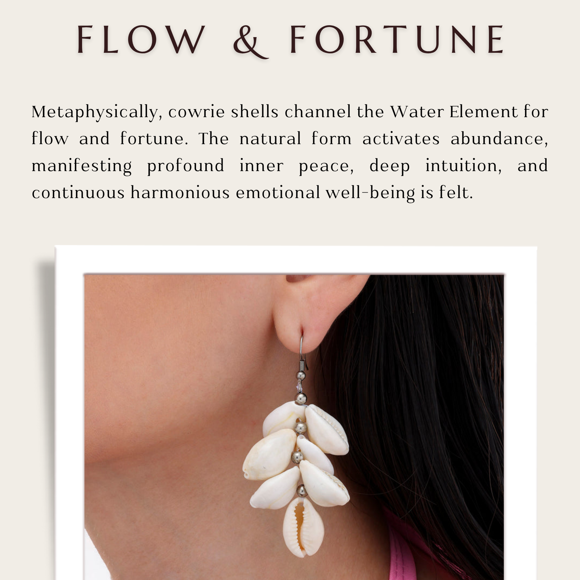 Cowrie shell danglers are a stunning and unique item that adds the natural beauty of the ocean to your jewelry collection. These earrings are intended to convey a sense of seaside charm and tropical elegance, making them ideal for adding a touch of beachy flair to any look. Dangling earrings with real cowrie shells as the main element. The shells can be kept unpolished or polished for an added luster. Can be worn alone or with other beach-inspired jewelry for a simple but eye-catching look.