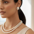 The necklace collection exudes both timeless beauty and refined appeal. Each piece in this collection has two strands of beautiful pearls that were carefully chosen for their flawless sheen and uniform shape. The necklaces are designed to drape gracefully over the neck, providing a timeless yet modern style that complements any outfit. The collection contains a wide range of patterns from typical white pearls. Some designs use delicate diamond embellishments or elaborate metalwork to elevate the overall appearance.