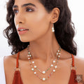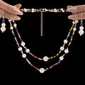 Experience the everlasting beauty of the Exquisite Double Layer Bead & Pearl Necklace Ensemble a masterpiece of elegance and grace. This fascinating combination consists of two layers each delicately made with a harmonious blend of shiny beads and tiny pearls. Each strand is embellished with alternating designs resulting in a stunning interplay of textures and shapes. The necklace is meant to go with both casual and formal outfits making it a flexible addition to any jewelry collection. The necklace Ensemble oozes sophistication and refinement making you feel effortlessly elegant on any occasion. Wear it alone for a subtle statement or layer it with other items for a more dramatic effect.