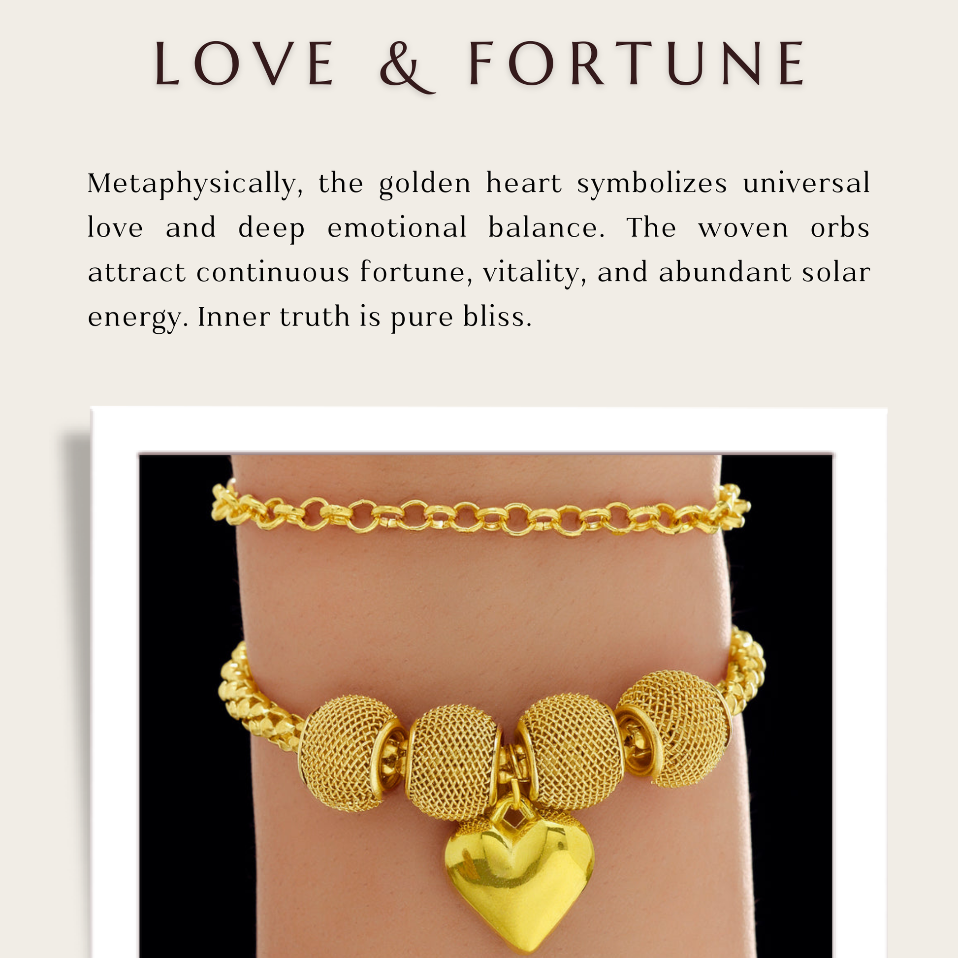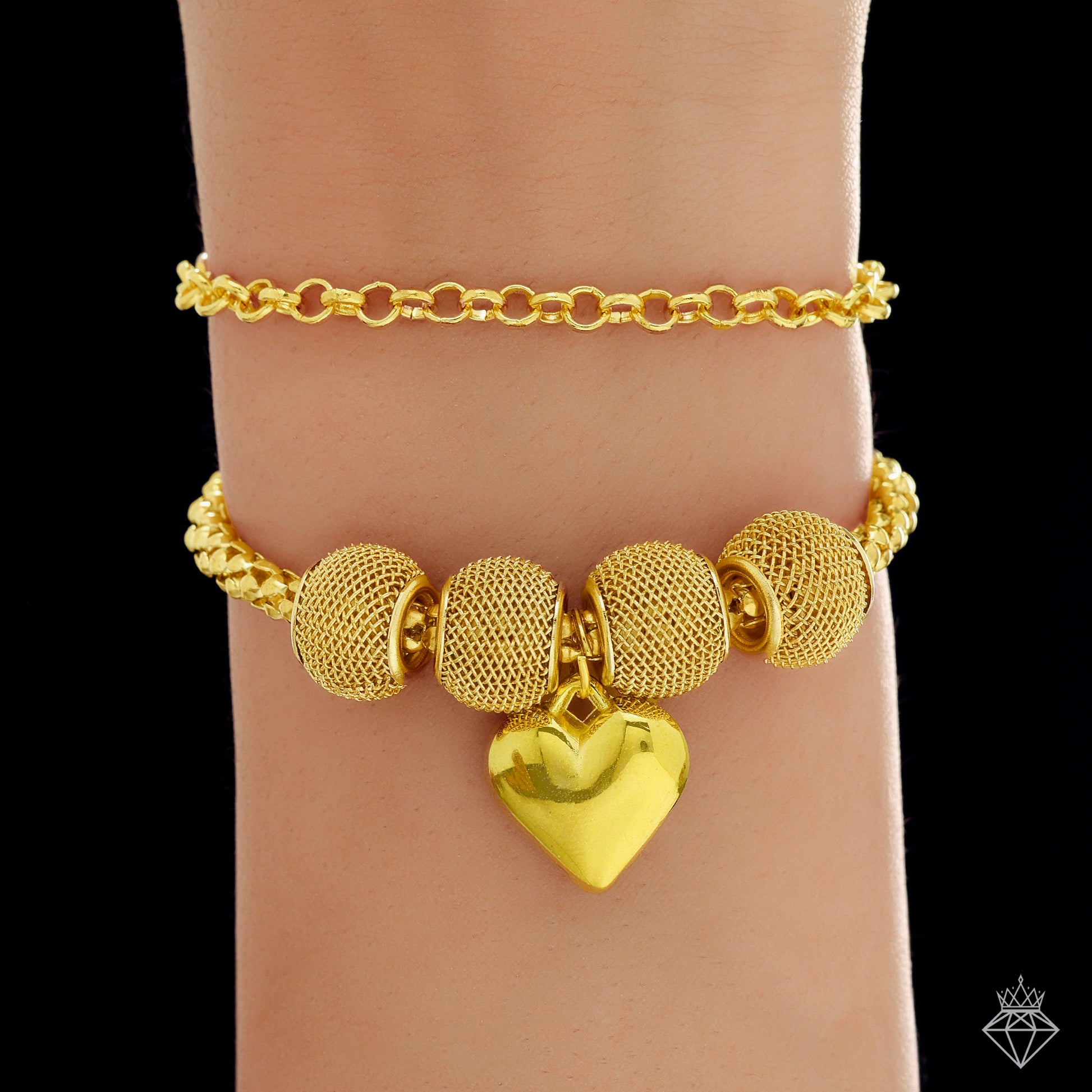 PRAO Anti-Tarnish Golden Heart Charms Bracelet (Adjustable Size)