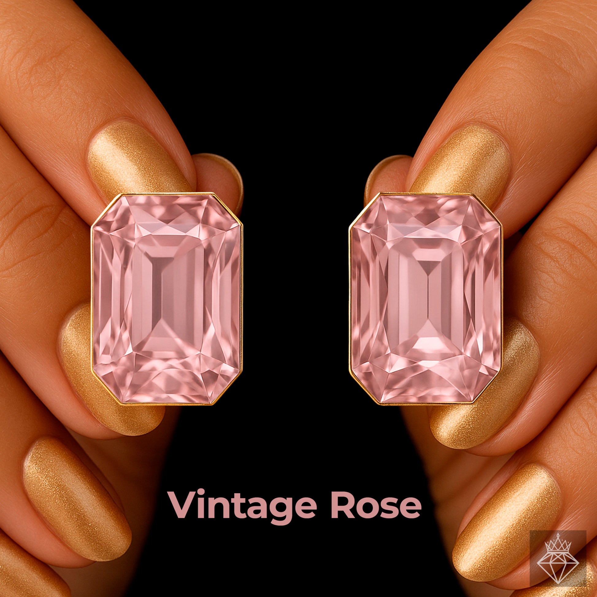 Rectangular vintage rose-colored crystals that radiate classic elegance and charm adorn these gorgeous earrings. With each movement, the crystals' subtle blush tones glimmer, adding a charming and elegant accent to your ensemble. The earrings combine timeless beauty with contemporary sophistication, all set within a finely detailed frame with a vintage-inspired design. Perfect for both professional and informal settings, their sleek, elongated shape provides a sophisticated glitter and flatters the face. They are a perfect accessory for people who value subtle elegance with a dash of vintage glitz because they are comfortable and lightweight. These earrings provide coziness, femininity, and a subtle statement to any ensemble, whether worn alone or with complementary pieces. An elegant complement to any jewelry collection.