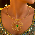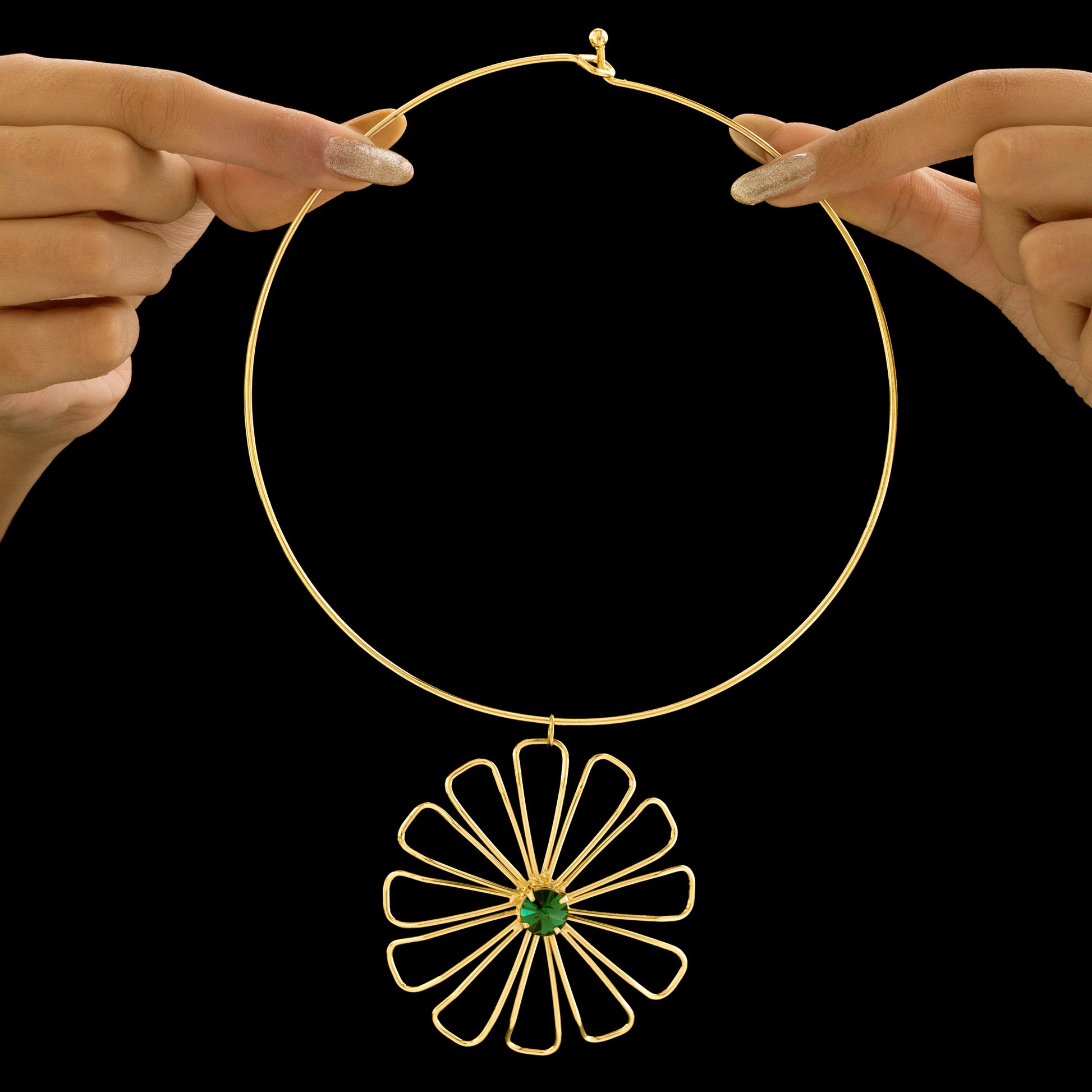 PRAO Anti-Tarnish Golden Flower & Emerald Necklace