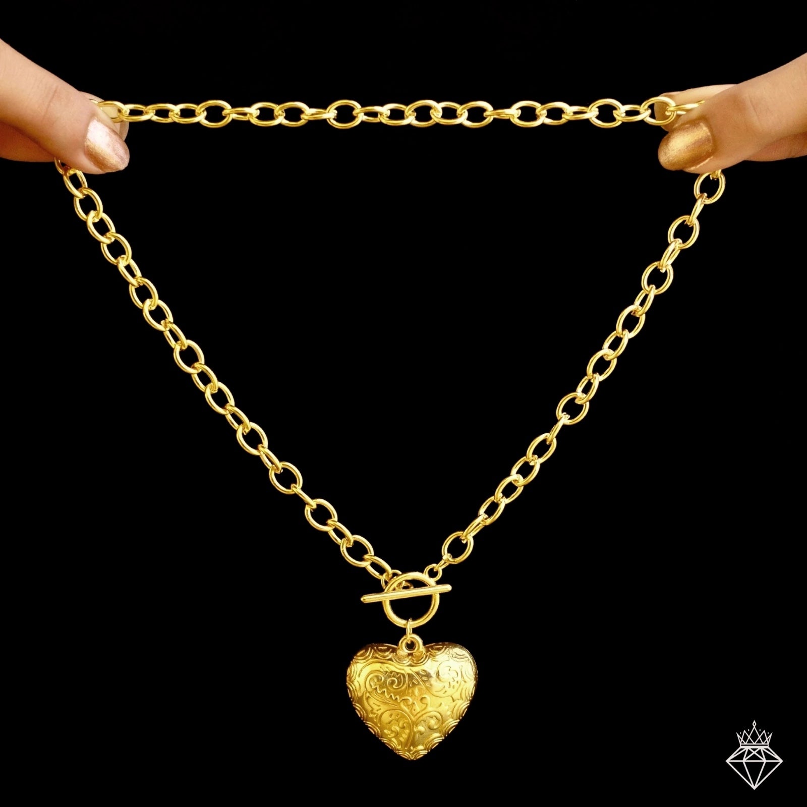 PRAO Anti-Tarnish T-Lock Puffy Heart Pendant Necklace