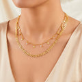 PRAO Necklace Waterproof Double Layer Chevron Chain with Shell Charms