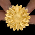 This lovely little sunflower ring is a stunning example of nature's beauty, with detailed embellishments that capture the spirit of a sunflower in a small, delicate shape. The petals are delicately carved to produce a soft, textured appearance, while the core of the flower glows with a gentle golden tint, offering a touch of warmth. The ring's lightweight and comfy style makes it great for everyday use, easily complementing any outfit. Its minimalist yet eye-catching design offers a joyful, nature-inspired touch to your jewelry collection. This little sunflower ring, whether worn alone or layered with other rings, adds a refreshing, happy element to your outfit and is ideal for those who value both beauty and simplicity.