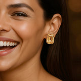 Enhance your accessory collection with these magnificent spiral gold-plated earrings, which will lend a stylish touch to any look. The elaborate design, with its distinctive spiral shape, oozes inventiveness and modernism while keeping a timeless charm. The high-quality gold plating provides a smooth, polished surface that catches the light nicely, resulting in a gentle shimmer suitable for both casual and formal situations. These earrings are lightweight and comfortable to wear, making them suitable for everyday use or special occasions, and they match both contemporary and traditional designs. Their durability and sophisticated appearance make them an ideal gift for someone special, combining style and functionality. Whether you're dressing up or down, these spiral gold-plated earrings are an essential item that adds beauty and refinement to your look.