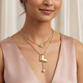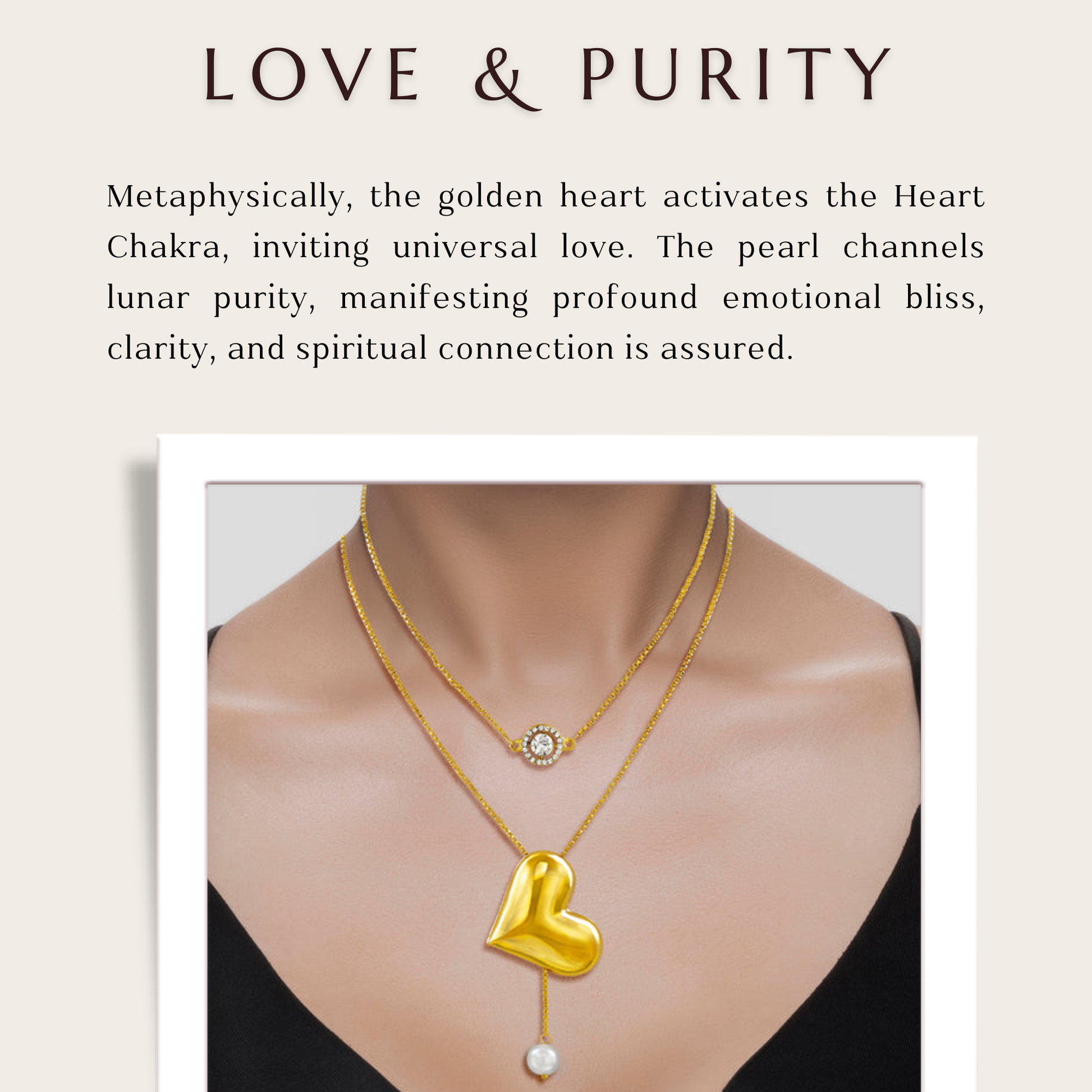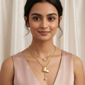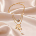 This gorgeous double-layer necklace is a perfect combination of modern and classic components. The first layer is a glittering pendant with elaborate workmanship that catches the light beautifully, providing a touch of elegance to any ensemble. The second layer has a beautiful puffy heart and a glossy pearl, representing love and eternal grace. The combination of these distinct accents results in a versatile item that easily suits both casual and formal clothes. This lightweight piece, designed with an adjustable chain for a proper fit, is both comfortable and attractive. Its delicate craftsmanship and layered design offer depth and sophistication, making it an essential accessory for anybody who values subtle beauty and polished elegance.