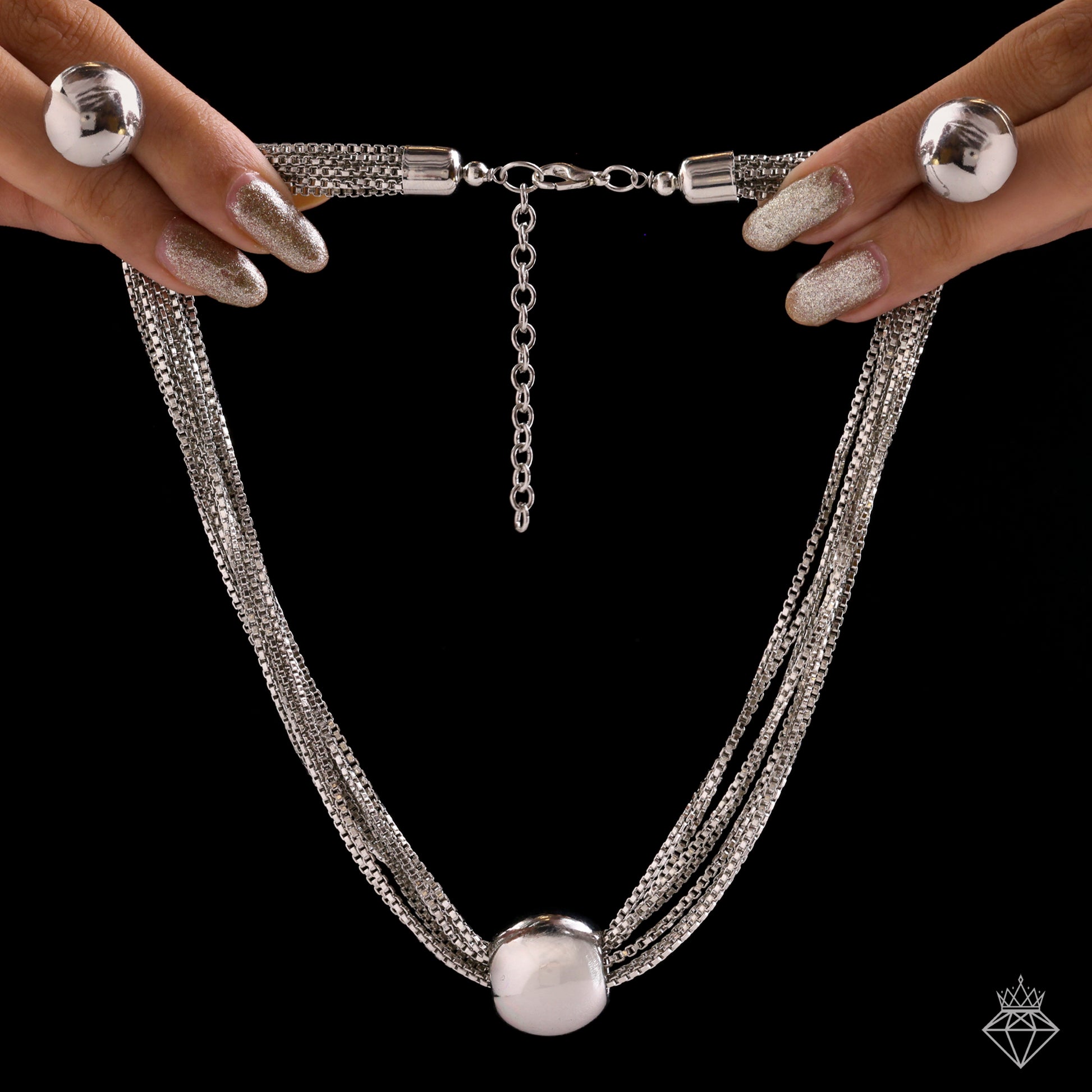 This stylish jewelry set includes a sleek box chain necklace and matching stud earrings, providing a modern and timeless look. The box chain necklace has a sleek and polished finish, making it a versatile item that will match any ensemble, from casual to evening. The matching stud earrings lend a touch of subtle elegance to the overall appearance. This lightweight set is designed with accuracy and attention to detail, making it comfortable for everyday wear while retaining a beautiful appearance. This combo is ideal for dressing up for a special occasion or making a subtle statement with your everyday look. Its basic style and adaptable charm make it an excellent gift or must-have addition to any jewelry collection.