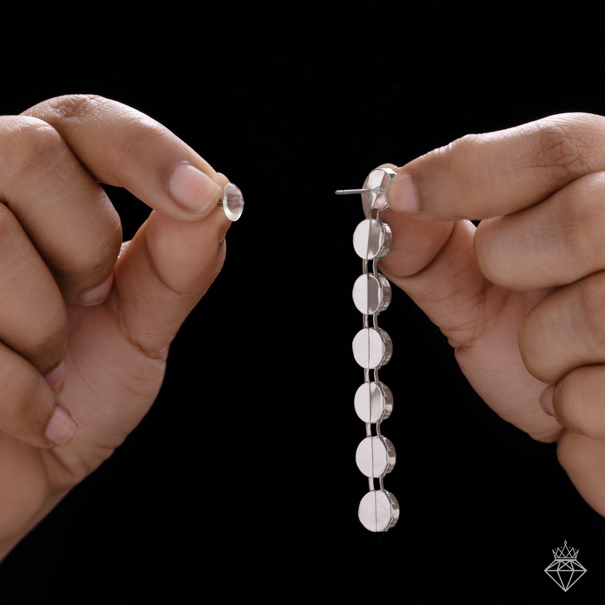 This beautiful jewelry set includes a sophisticated single-line silver necklace accented with dazzling studs for a touch of classic sophistication. Its sleek, minimalist style makes it a versatile accessory that complements both casual and formal outfits. Matching long dangle earrings add grace and beauty to the necklace. The earrings have exquisite craftsmanship and a faint shimmer, resulting in eye-catching movement with each step. This set is ideal for special occasions, romantic evenings, or everyday wear, adding a brilliant touch to your look. Crafted from lightweight fabrics, it provides all-day comfort without sacrificing style. Whether as a nice gift or a lovely addition to your own collection, this silver set adds the appropriate amount of elegance and simplicity to any outfit.
