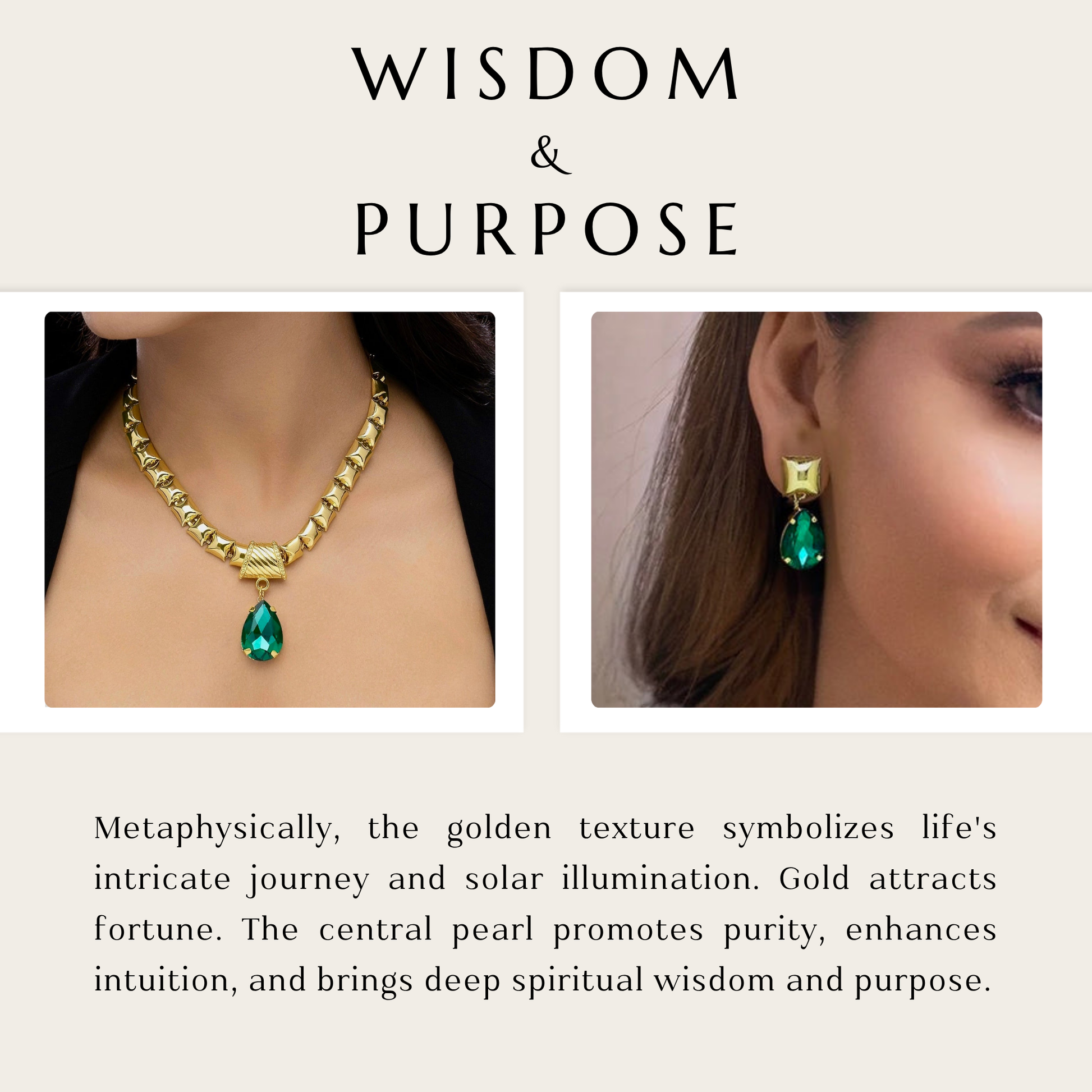 PRAO Anti-Tarnish Emerald Crystal Necklace Set With Earrings