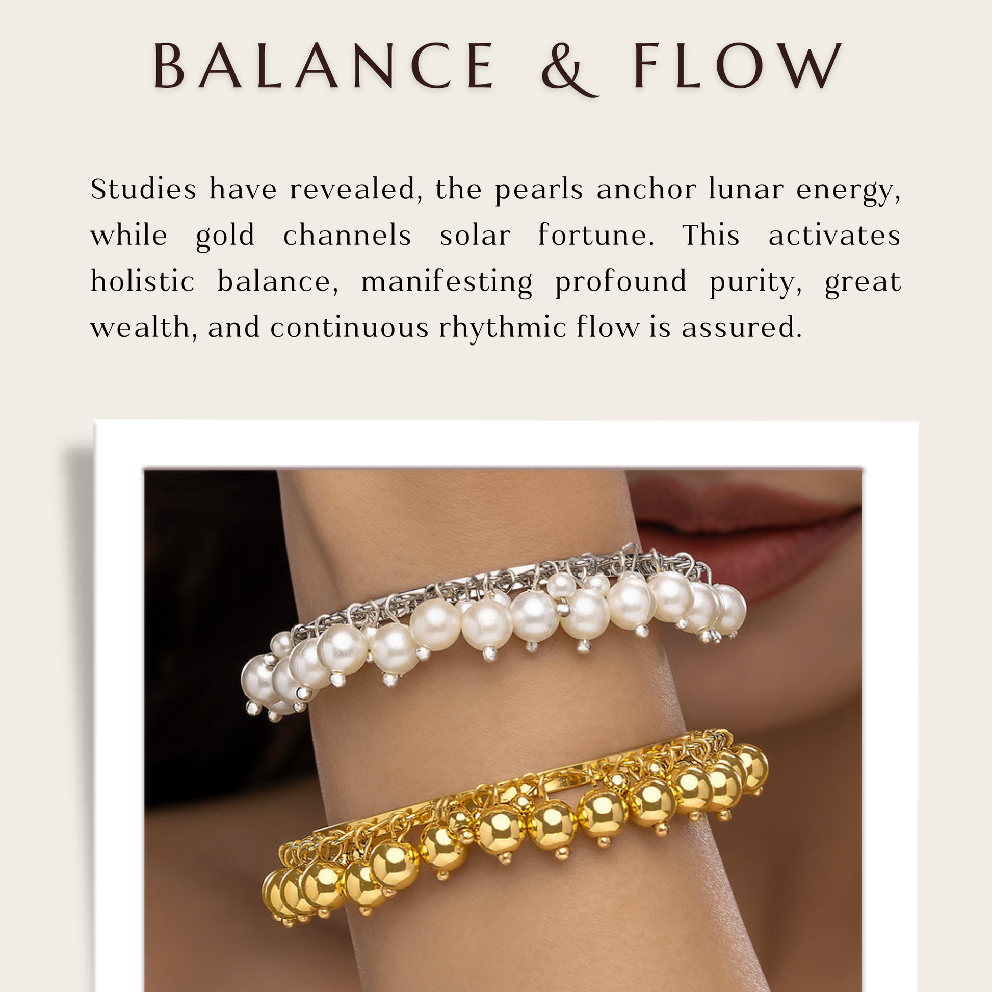 PRAO Anti-Tarnish Golden & Pearl Bangle Bracelets Set (Adjustable Size)