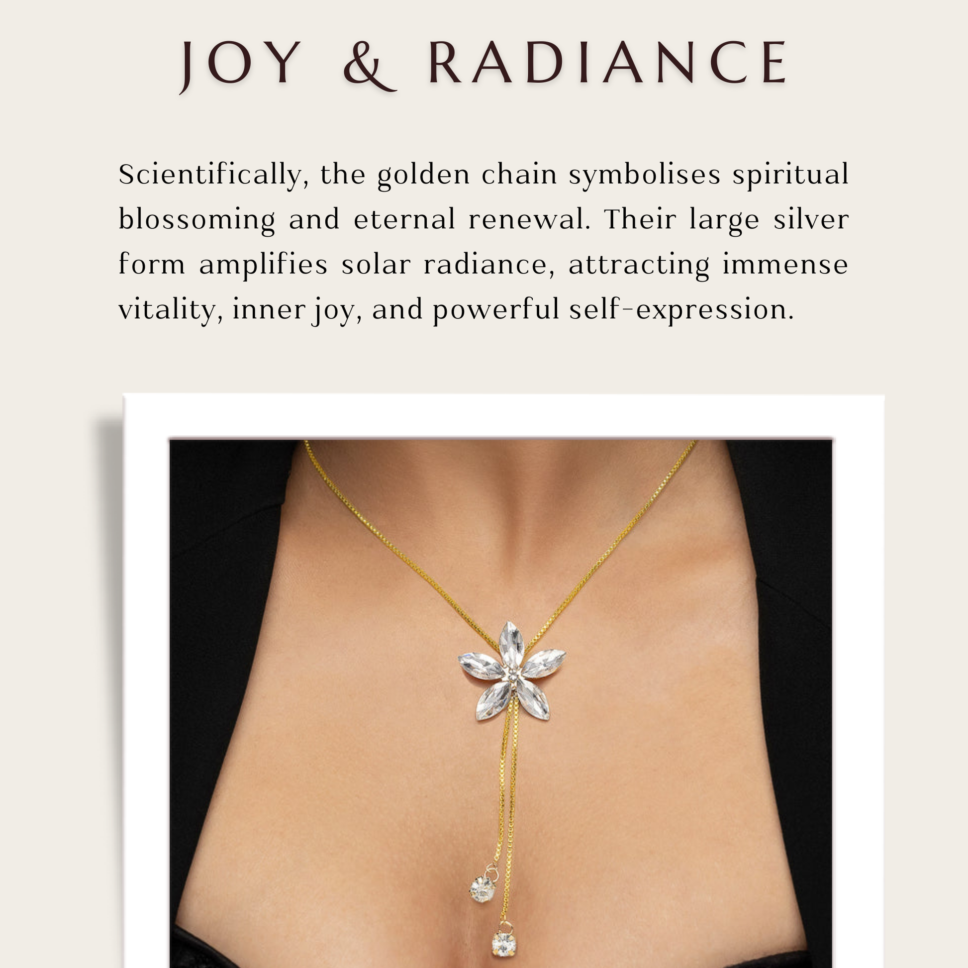 This stunning Y-shaped necklace, which has brilliant marquise-cut crystals set in a delicate floral arrangement, will help you accessorize with refinement and elegance. A classic and feminine appeal is produced by the elegant way the neckline is accentuated by the exquisite silhouette. Because each crystal is expertly positioned to reflect light in a wonderful way, your appearance will dazzle brightly. The flower arrangement radiates elegance and charm, which makes it the ideal choice for evening gatherings, special occasions, or incorporating a touch of luxury into regular attire. A flattering and fashionable touch are provided by the Y-shaped design, which lengthens the neck. This necklace, which combines traditional elegance with contemporary sophistication, was expertly crafted with attention to detail.