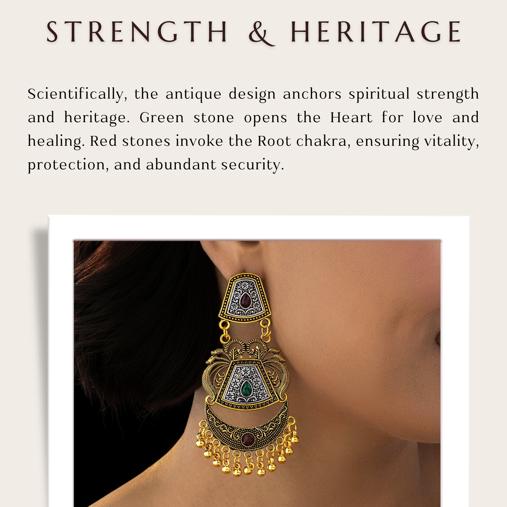 With these gorgeous dual-tone ethnic earrings, which are meant to lend a royal touch to any ensemble, you may embrace classic elegance. They are the ideal accessory for festive occasions, weddings, and cultural festivals because of their exquisite craftsmanship and the lovely blending of two rich tones, which accentuates their historic appeal. The lightweight construction guarantees comfortable wear all day, while the exquisitely detailed design displays exquisite creativity. The striking yet elegant silhouette adds sophistication to your entire ensemble and goes well with ethnic clothing such as sarees, lehengas, and anarkalis. These earrings radiate elegance and tradition whether they are worn alone or paired with other items. They are the ideal complement to any jewelry collection and can make a considerate present for people who value classic styles and cultural charm.