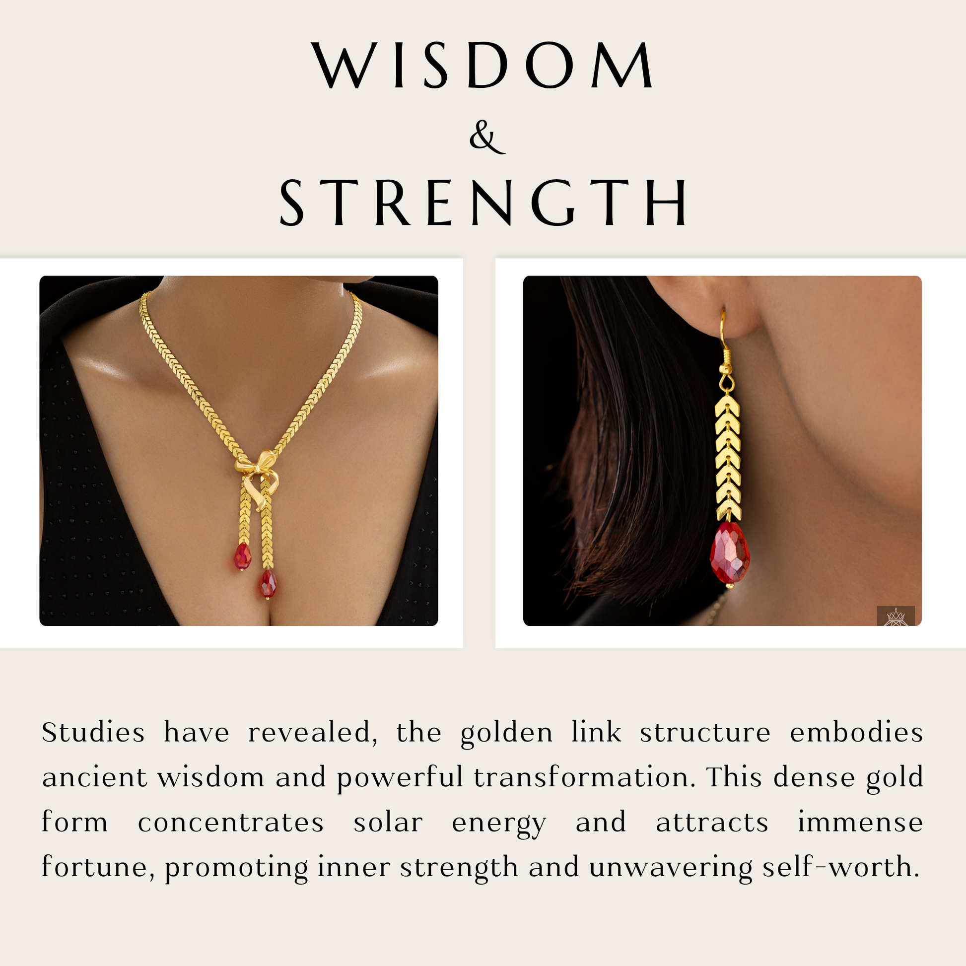 This beautiful Y-necklace, embellished with vivid red crystal beads and an elegant leaf chain design, will elevate your elegance. The glistening pearls contrast sharply with the elaborate craftsmanship, adding a splash of color. This piece is the ideal balance of sophistication and whimsy, with a delightful bow design adding to its feminine appeal. The Y-shape lengthens the neckline and gives every ensemble a refined touch. It simply blends in with both formal and casual ensembles because it is lightweight and adaptable. This necklace adds a sophisticated and fashionable touch to any event, whether it is worn with an evening gown, a contemporary dress, or traditional clothing. It is a lovely complement to any jewelry collection and a considerate present for someone who values delicate yet striking accessories.
