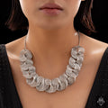 With its interconnected spring-inspired components, this gorgeous silver-tone necklace adds a touch of contemporary refinement. It is the ideal accessory for any event because of its distinctive design, which produces a striking yet sophisticated appearance. Its opulent appearance is enhanced by the polished silver finish, which exquisitely reflects light with each motion. This striking item, which is made to fit comfortably around the neckline, strikes a mix between flair and adaptability. It effortlessly enhances any look, whether it is worn with a formal attire, a casual ensemble, or a stylish evening dress. It is visually striking and lightweight, offering all-day comfort without sacrificing style. This necklace is a must-have for people who enjoy unique jewelry and it makes a considerate present for anybody who values great craftsmanship and classic style in their accessories.