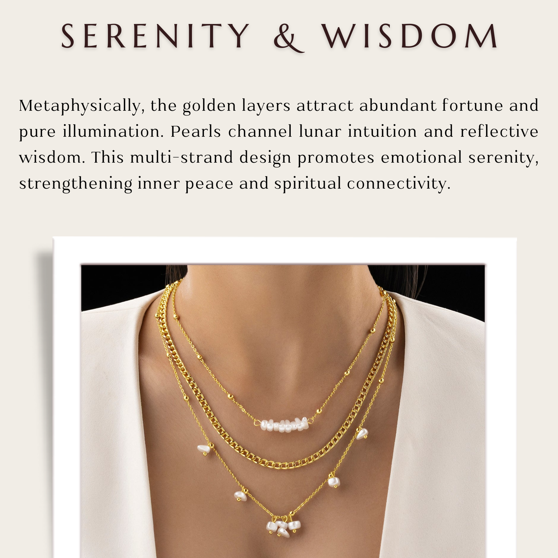 With this gorgeous triple-layer necklace that has uncut pearl embellishments, you may up your style ante. Any ensemble is improved by the multi-layered design's elegant cascading effect, which adds depth and sophistication. Uncut pearls' unadulterated beauty adds a natural charm that combines classic appeal with contemporary design. This necklace is comfy and lightweight, and it looks great around the neckline. It may be worn to both formal and informal events. It radiates classic sophistication whether worn with ethnic clothing for a more traditional appearance or dressed up with modern ensembles for a stylish statement. Jewelry lovers must own this piece, which is ideal for weddings, joyous occasions, or casual elegance. It embodies easy elegance and sophistication and would be a wonderful present or an opulent addition to your collection.