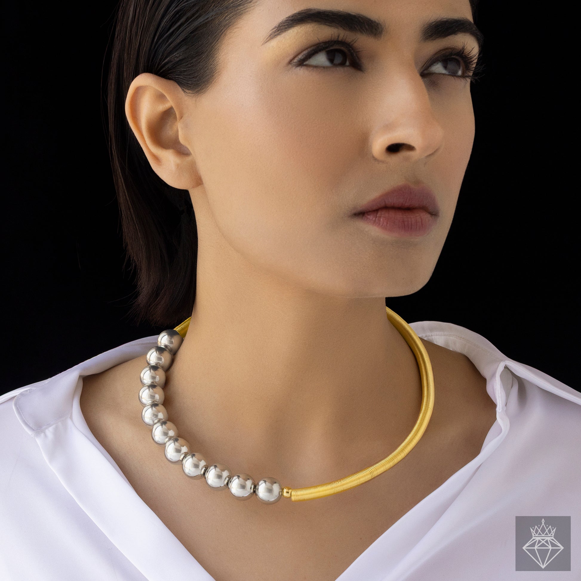 PRAO Anti-Tarnish Spring & Balls Hasli Necklace