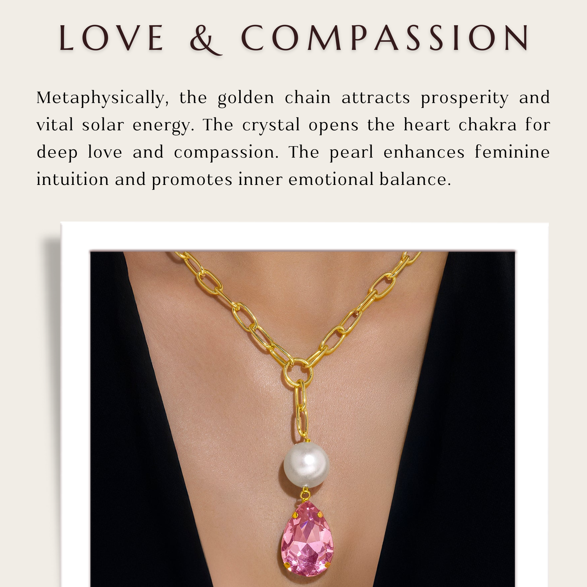 This exquisite Y-necklace, which is elegantly crafted to accentuate your neckline, has a delicate chain that attracts attention with its sophisticated silhouette. A glittering crystal accent and a glowing pearl drop at the center create a classic combination of brilliance and softness. Ideal for both day and evening use, the lariat-style drop provides a touch of drama without sacrificing subtle appeal. It is comfy and lightweight, and it looks great against the skin and goes well with both formal and informal ensembles. This necklace adds a touch of refinement to any ensemble, whether it is worn alone for a simple statement or layered with other items. It's a multipurpose piece that will add flair to your jewelry collection and is perfect for special occasions as well as everyday use.