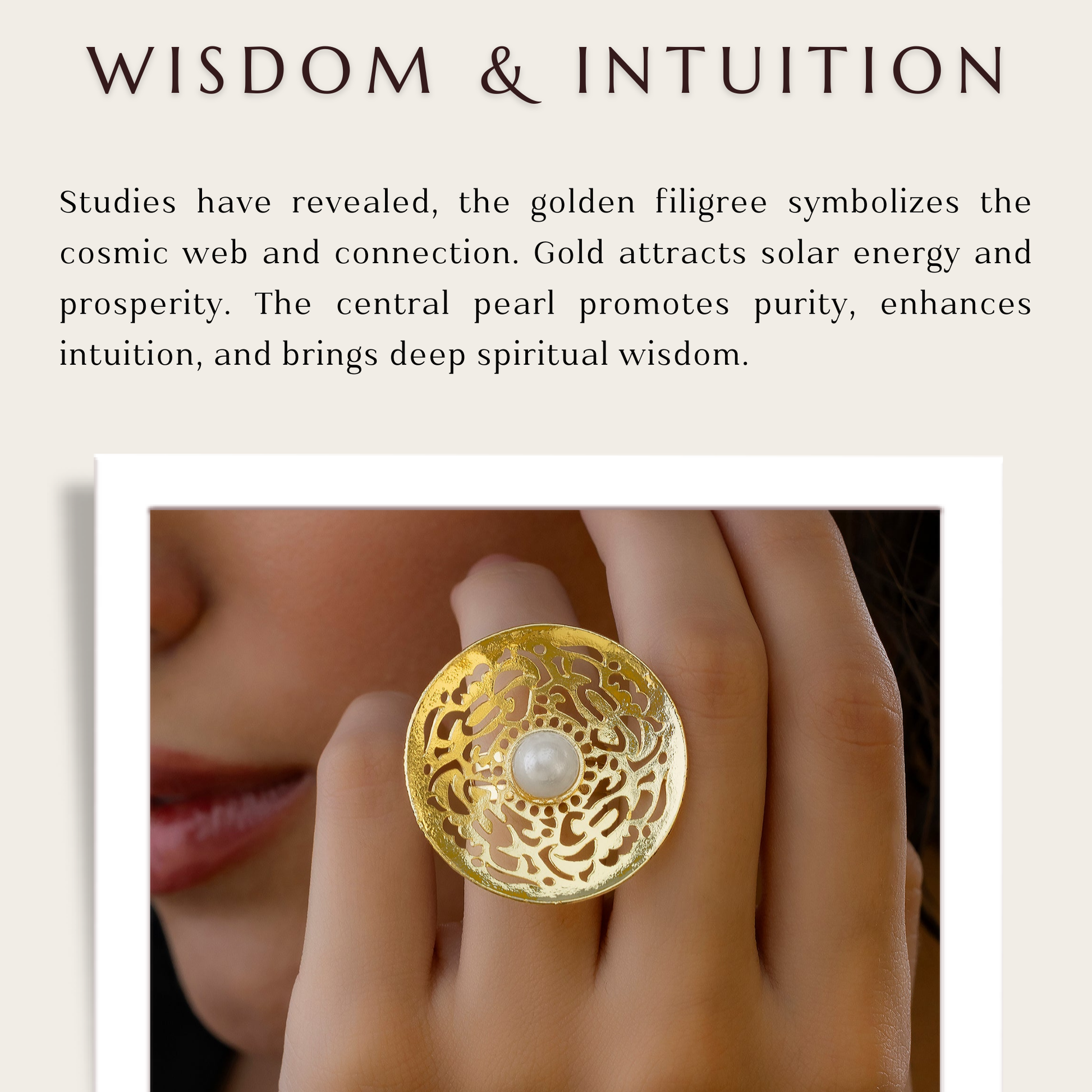 PRAO Anti-Tarnish Golden Filigree Ring With Pearl (Adjustable Size)