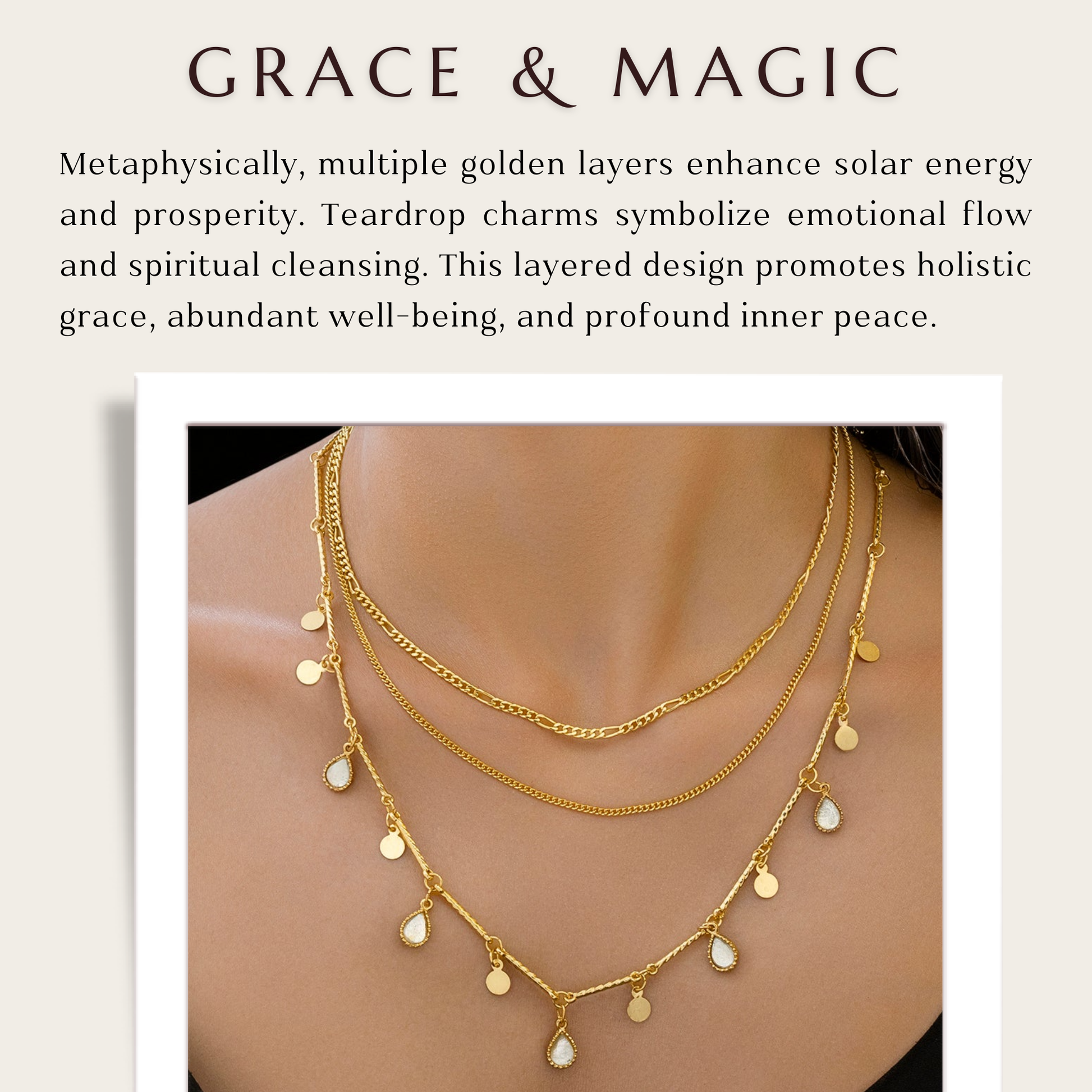 PRAO Anti-Tarnish Triple Layer Golden Chain & Charms Necklace