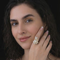 The delicate crystal blossom design on this exquisite openable ring lends a touch of feminine charm and brightness to any ensemble. A brilliant focal point that captures the light from all directions is created by the exquisitely designed petals embellished with glistening crystals. It is both fashionable and useful because to its adjustable open band, which fits fingers of all sizes comfortably. The flower's elaborate design exemplifies exquisite craftsmanship, elegantly fusing elegance and glitz. This ring adds a new, floral-inspired elegance to your jewelry collection and is ideal for special events or to dress up regular outfits. It is a classic piece that provides understated refinement and sparkle wherever you go because it is lightweight, adaptable, and looks well on its own or with other accessories.