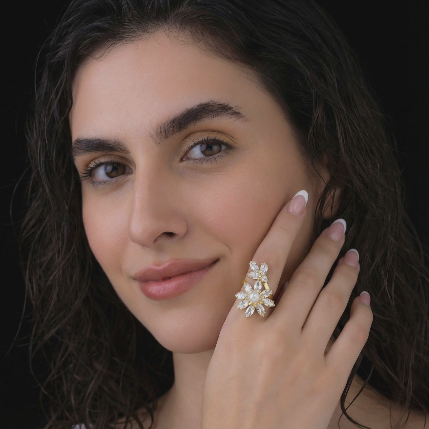 PRAO Ring Anti-Tarnish Crystal Flower (Adjustable Size)