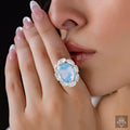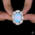 The intriguing rainbow opal at the core of this gorgeous oval statement ring is captivating due to its brilliant color play that changes exquisitely in the light. The opal's iridescent colors, which vary from gentle pastels to bright flashes, produce a captivating and dynamic impression. The ring, which is set in a sleek, polished band, blends the opal gemstones' mysterious charm with contemporary elegance. It is the ideal option for people who enjoy using accessories to show off their uniqueness and refinement because of its distinctive design and large size. Comfortable to wear and striking from any aspect, this ring adds a distinctive pop of color and charm to both formal and casual ensembles. It is a classic piece that skillfully combines modern design with organic charm.