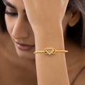 The timeless bond between love and eternity is exquisitely captured by this sophisticated bangle bracelet. Carefully crafted, it symbolizes boundless love and strong emotional ties with a delicate heart that transitions from an elegant infinity sign. The design is ideal for both special occasions and daily elegance since it is embellished with American diamonds that sparkle and add just the right amount of glitter. Comfort and adaptability are guaranteed by its smooth, adjustable fit, which effortlessly goes with every ensemble, from business casual to formal attire. More than just an ornament, this bracelet is a meaningful piece that speaks of unwavering love and loyalty, making it a perfect gift for birthdays, anniversaries, or simply to communicate sincere emotions. This classic design will add a touch of sentimentality and glitter to any jewelry collection.