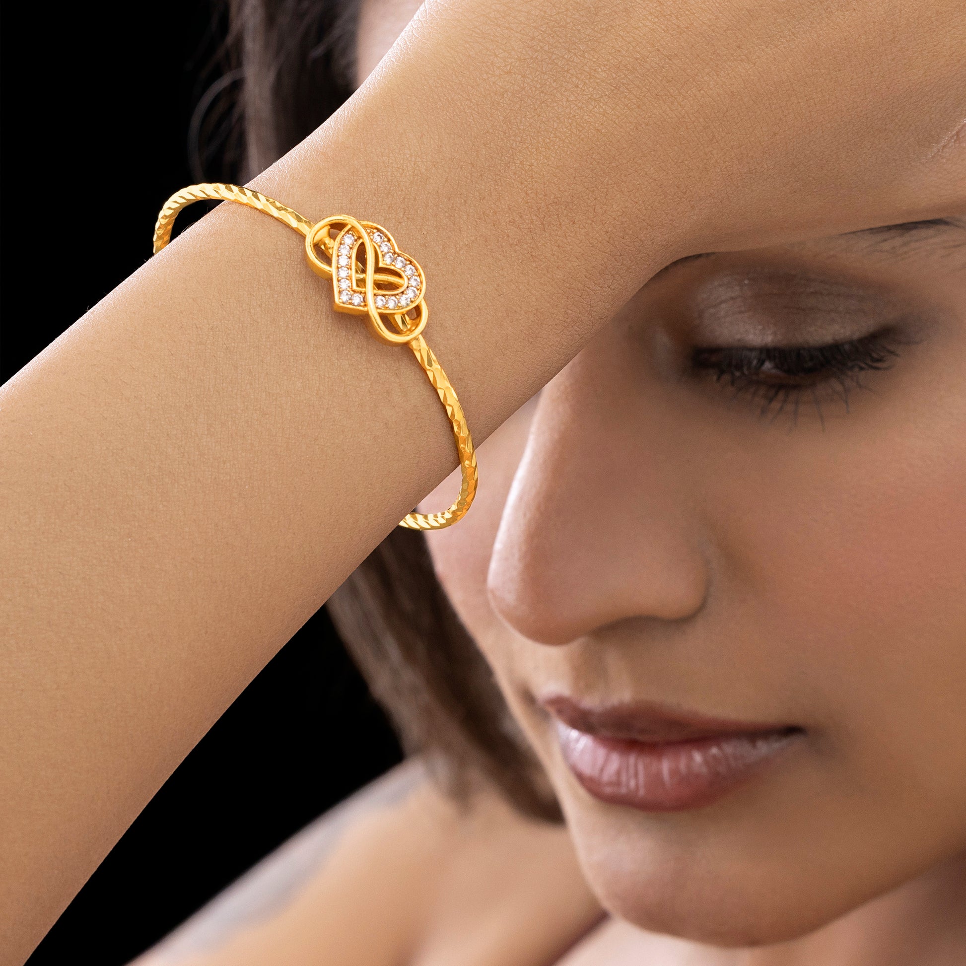 PRAO Bracelet Anti-Tarnish INFINITY Golden Crystal Heart Bangle (Adjustable Size)