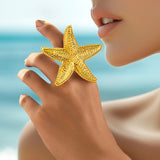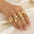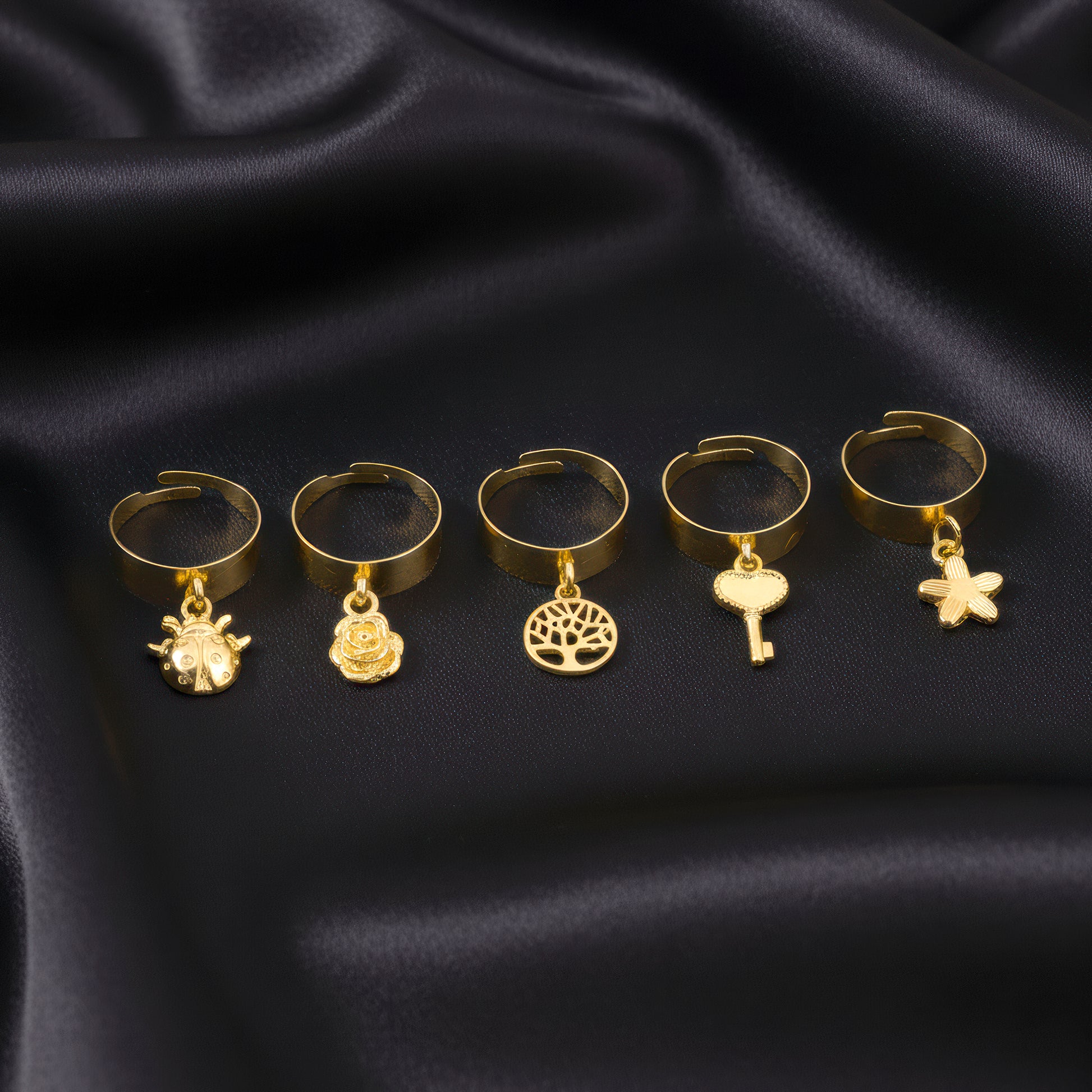 PRAO Anti-Tarnish 5 Gold Plated Charms Rings Set (Adjustable Size)