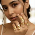 This exquisitely crafted set of five rings will give your jewelry collection a whimsical yet significant touch. Every ring has a distinct symbol that has meaning and appeal of its own. Freshness and new beginnings are symbolized by the blooming flower, while power, expansion, and connection are represented by the Tree of Life. The key in the shape of a heart represents love and the opening of doors. The traditional rose flower conjures up classic elegance and passion, while a delicate ladybug symbolizes luck and positivity. These rings, which have a polished finish and meticulous craftsmanship, are ideal for wearing alone or in combination. They go well with both formal and casual attire because they are lightweight and adaptable. This combination combines style, symbolism, and beauty in a beautiful package, making it a perfect choice for pampering yourself or a special someone.