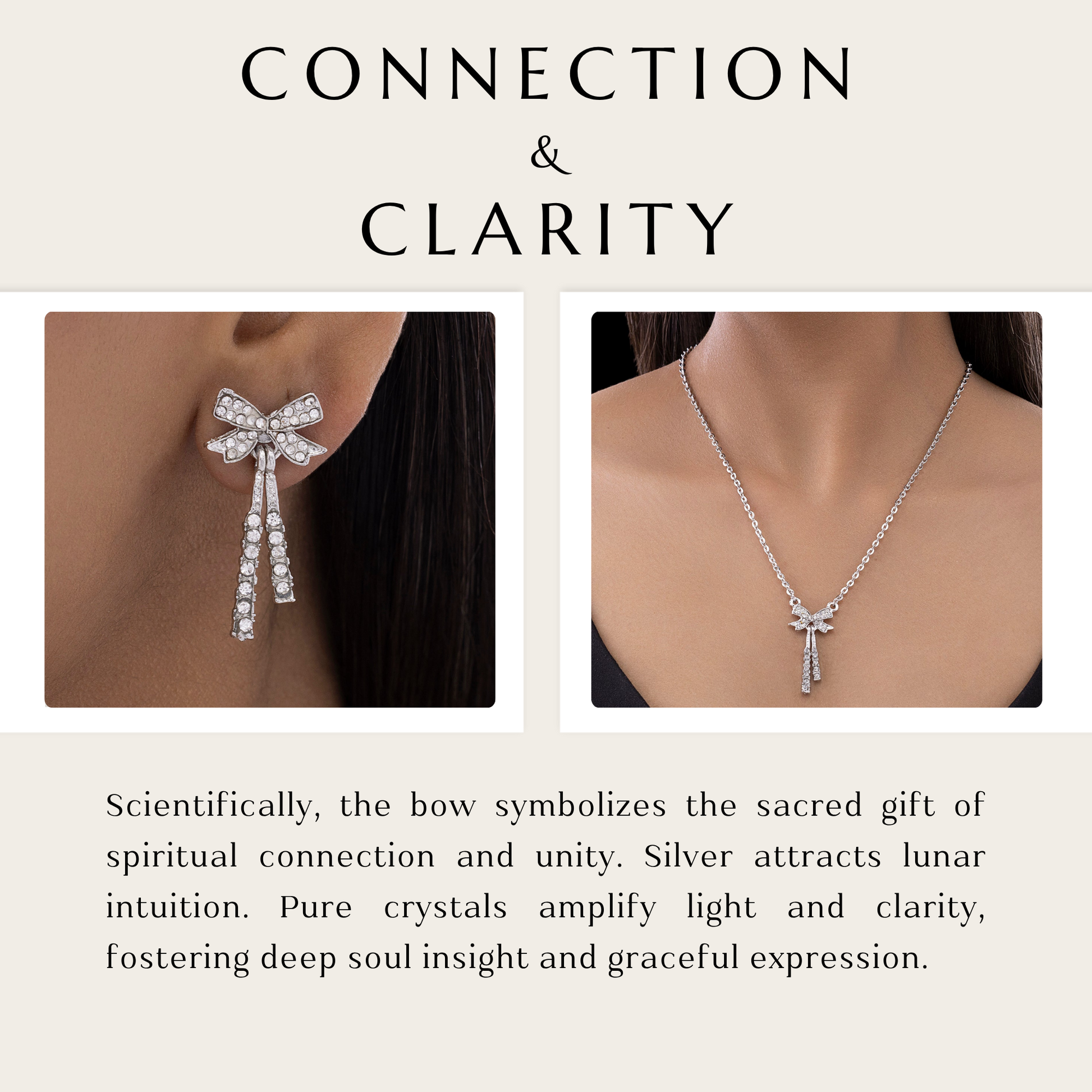 This necklace and earring set is sophisticated and whimsical, with a lovely bow pattern that is exquisitely adorned with dazzling American diamonds. The sparkling stones provide a hint of glitz and refinement, while the delicate bow pattern represents elegance and delicacy. The necklace is ideal for both special events and daily elegance since it hangs elegantly around the neckline. The pair produces a cohesive and refined appearance when worn with matching stud earrings that mimic the bow pattern. It is soft and lightweight, and it goes well with both formal and informal attire. This set combines classic beauty with a contemporary, feminine touch, adding the perfect amount of sparkle for every event and making it the perfect thoughtful gift or chic addition to your collection.