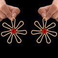 PRAO Anti-Tarnish Flower Statement Earrings with Red Cabochon