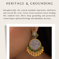With their thoughtfully created dual-tone ethnic statement earrings, you can celebrate tradition with a dash of modern flair. The earrings combine two timeless finishes in a striking contrast with their blend of rusted silver and antique gold tones. Their historic beauty is further enhanced by intricate patterns and carvings, and each stride is made more lively, rhythmic, and charming by the whimsical ghungroo ornamentation at the bottom. They are striking yet lightweight, achieving the ideal harmony between wearable comfort and festive drama. These earrings go well with sarees, lehengas, and fusion ensembles, making them perfect for weddings, cultural events, or joyous get-togethers. They are a go-to accessory for anyone wishing to convey elegance with a touch of folk-inspired flair because of their colorful presence and adaptable hues.