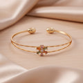 PRAO Bracelet Anti-Tarnish Double-Line Crystal Flower Bangle