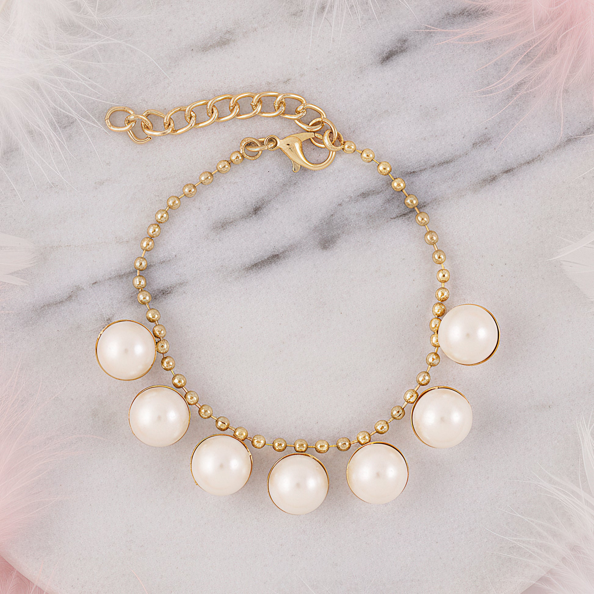 PRAO Anti-Tarnish Studded Pearl Chain Bracelet