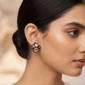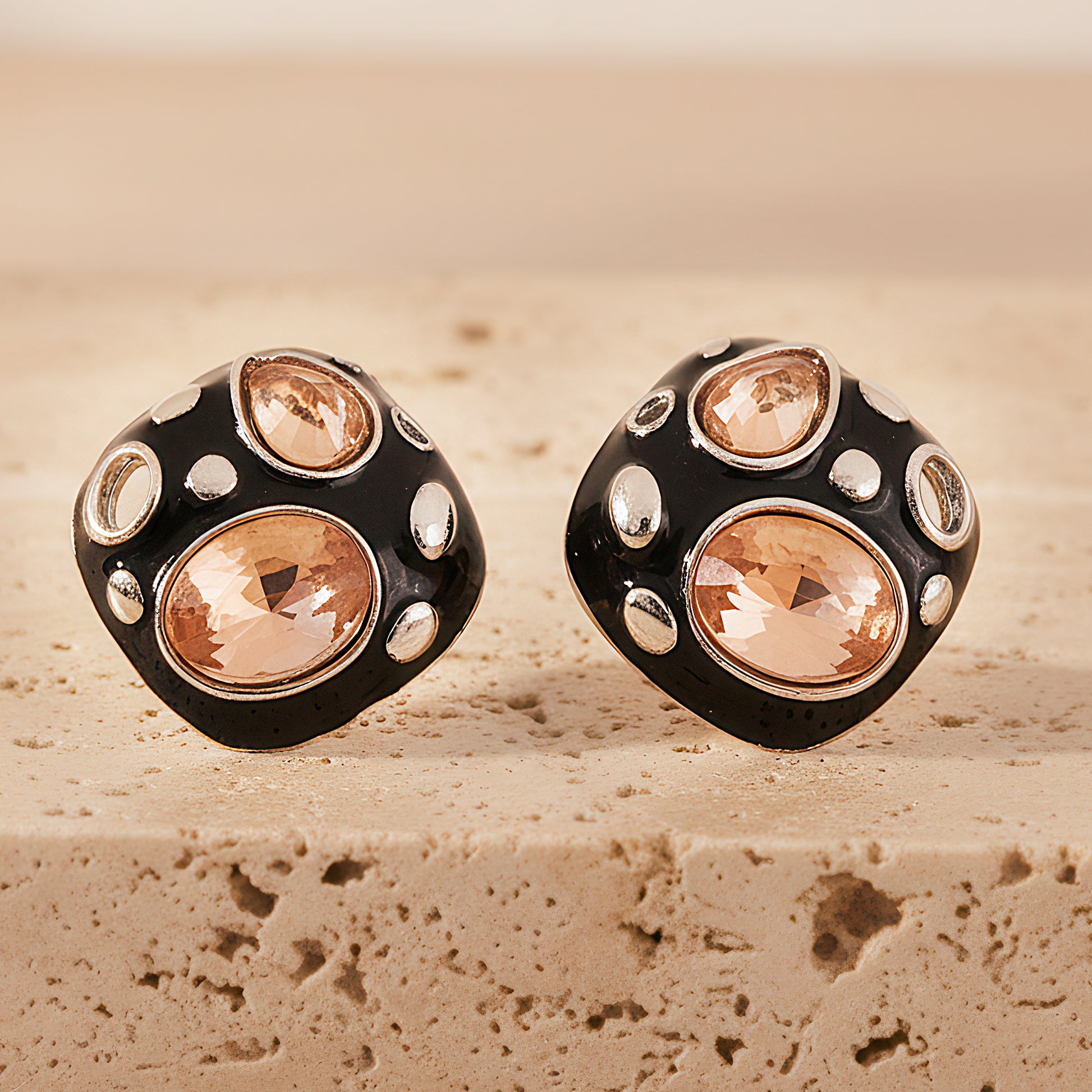 PRAO Earrings Anti-Tarnish Black Enamel Mixed Stones Studded Tops
